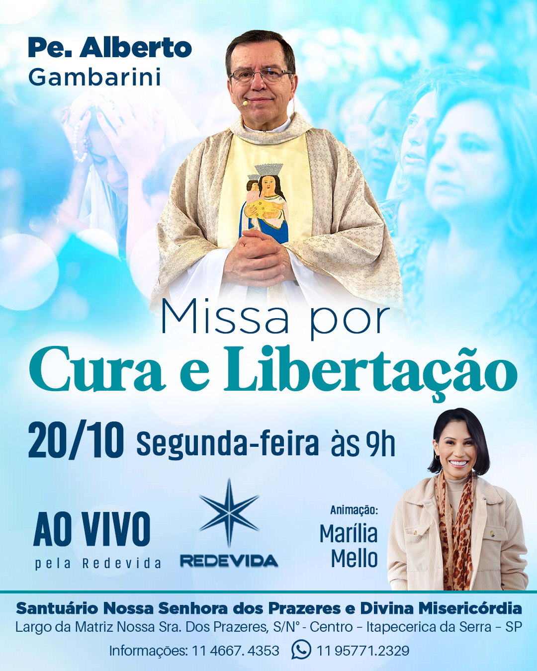 Acompanhe pelo canal da RedeVida ou pelo canal no Youtube RedeVida.