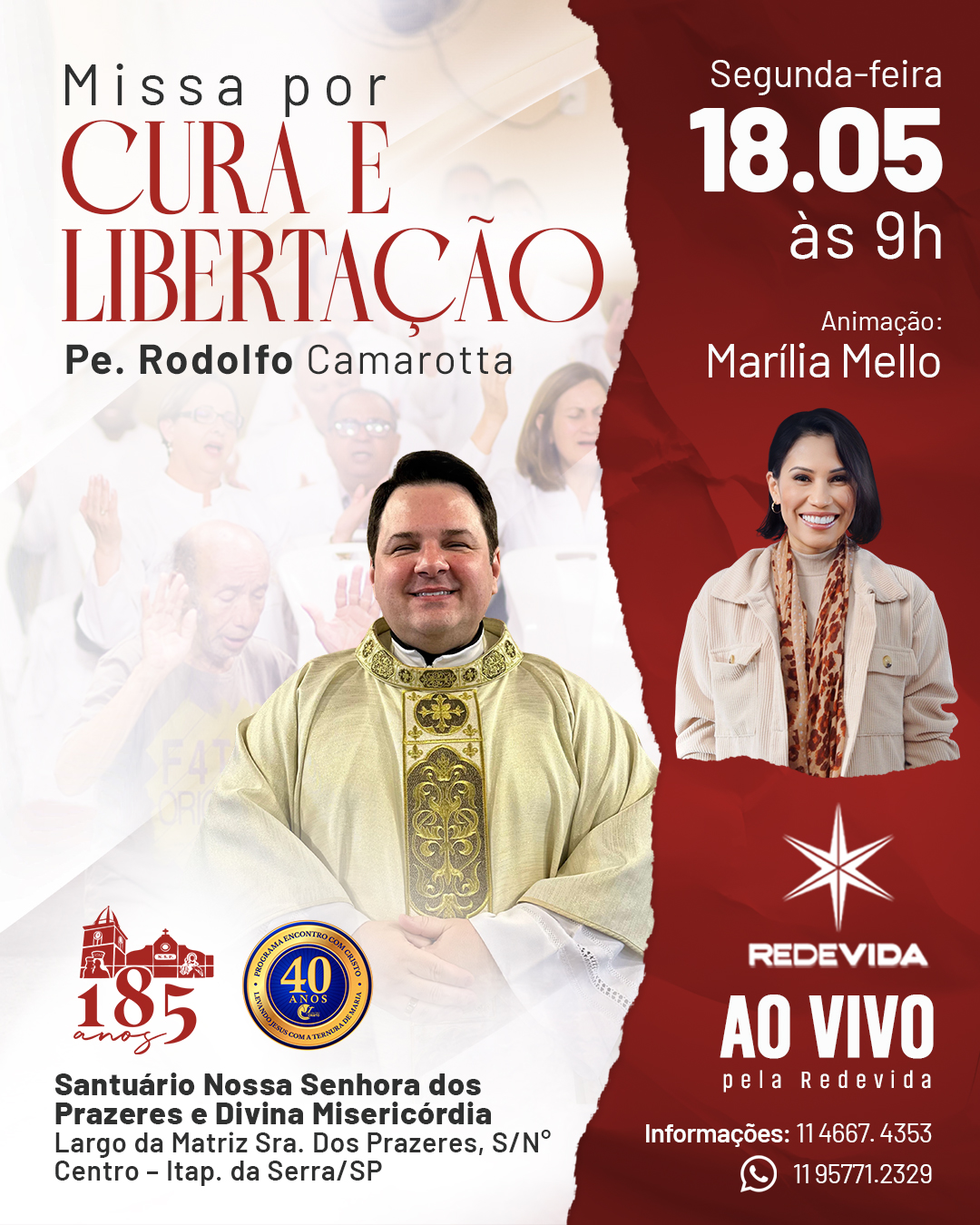 Acompanhe pelo canal da RedeVida ou pelo canal no Youtube RedeVida.