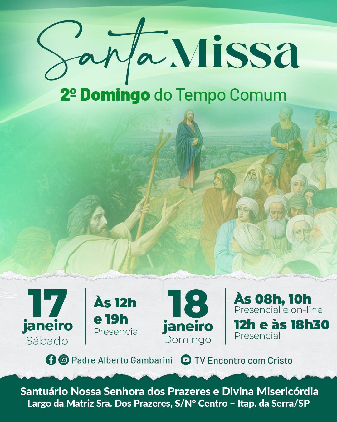Acompanhe pelo Facebook do Padre Alberto Gambarini ou pelo canal no Youtube TV Encontro com Cristo.
