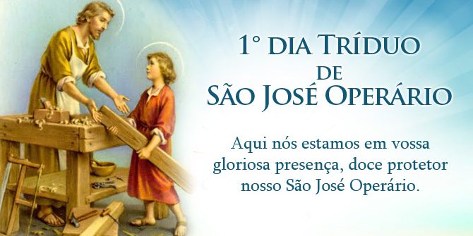 Aqui nós estamos em vossa gloriosa presença, doce protetor nosso São José Operário, implorando vosso eficaz patrocínio.