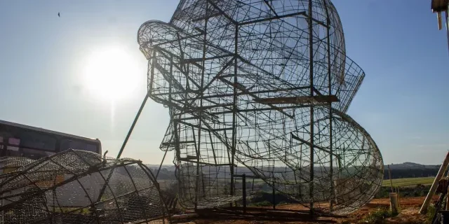 As armações de ferro da cabeça e das mãos de São Miguel Arcanjo já estão quase prontas. Só a cabeça terá seis metros de altura. A previsão é que a imagem fique pronta em dois anos.